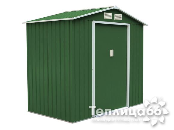 Хозблок Greenday Sally D площадь 5,8 кв.м. светло-зеленый с бежевым кантомСнято с производстваМеталлический хозблок шириной 2,5 м и длиной 2,3 м. Подходит для хранения садовой техники и инвентаря.S=5,8